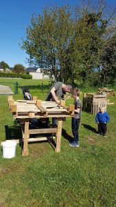 Certains ateliers sont mis en place : Etiquettage du jardin, semis et construction de mobilier en palettes.